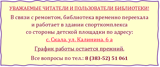 Скалинская сельская библиотека МБУ «Колыванская ЦБС»